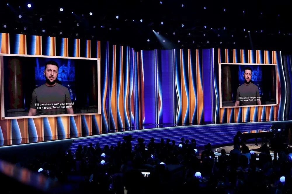 Lil Nas X, BTS, Silk Sonic, Lady Gaga, Olivia Rodrigo, Jon Batiste, Justin Bieber, Daniel Caesar, Billie Eilish gibi isimlerin sahne aldığı 2022 Grammy Ödülleri’nin en önemli anı ise, ülkesi Rusya saldırısı altında olan Ukrayna Devlet Başkanı Volodimir Zelenski’nin konuşma yapmasıydı.