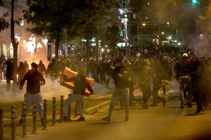 “Polis, şiddet her yerde, yoğun bakım ünitesi ve sağlık hiçbir yerde- Tersine bir şehir”, “Aynasızlar mahallemizden dışarı” ve “Maskenin altında sesimiz var, terör ve bastırılmaya son” yazlı pankartlar taşıyan göstericiler, Nea Smirni Emniyet Müdürlüğü’ne yürüdü. Burada yoğun güvenlik önlemi alan çevik kuvvet ekipleri, kendilerine taş, sopa, havai fişek ve molotofkokteyli ile saldıran yüzleri maskeli gruba göz yaşartıcı gaz ve ses bombalarıyla müdahale etti.