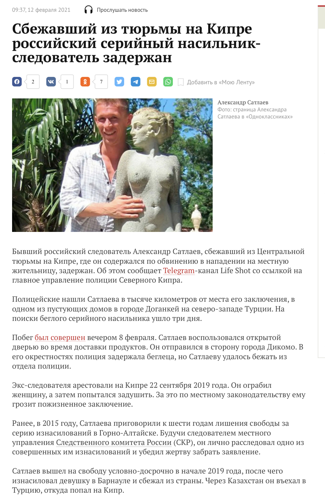 MK.ru gazetesi : Altay araştırmacı-manyak Alexander Satlaev, Kuzey Kıbrıs topraklarında yakalandı. Daha önce, kısmen tanınan bir devletin topraklarında bulunan bir hapishaneden kaçtı.