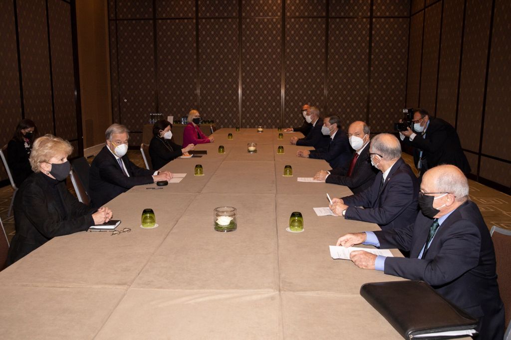 Bu arada Cumhurbaşkanı Tatar ile görüşmesinin ardından Guterres, Rum Lideri Nikos Anastasiadis ile de biraraya geldi.Rum haber kaynaklarının, Cenevre’de bulunan muhabirlerine dayandırdıkları habere göre, Anastasiadis’e Rum Müzakereci Andreas Mavroyannis, Kiriankos Kuros, Pandelis Pandelidis, Adrianos Kiriakidis eşlik etti.