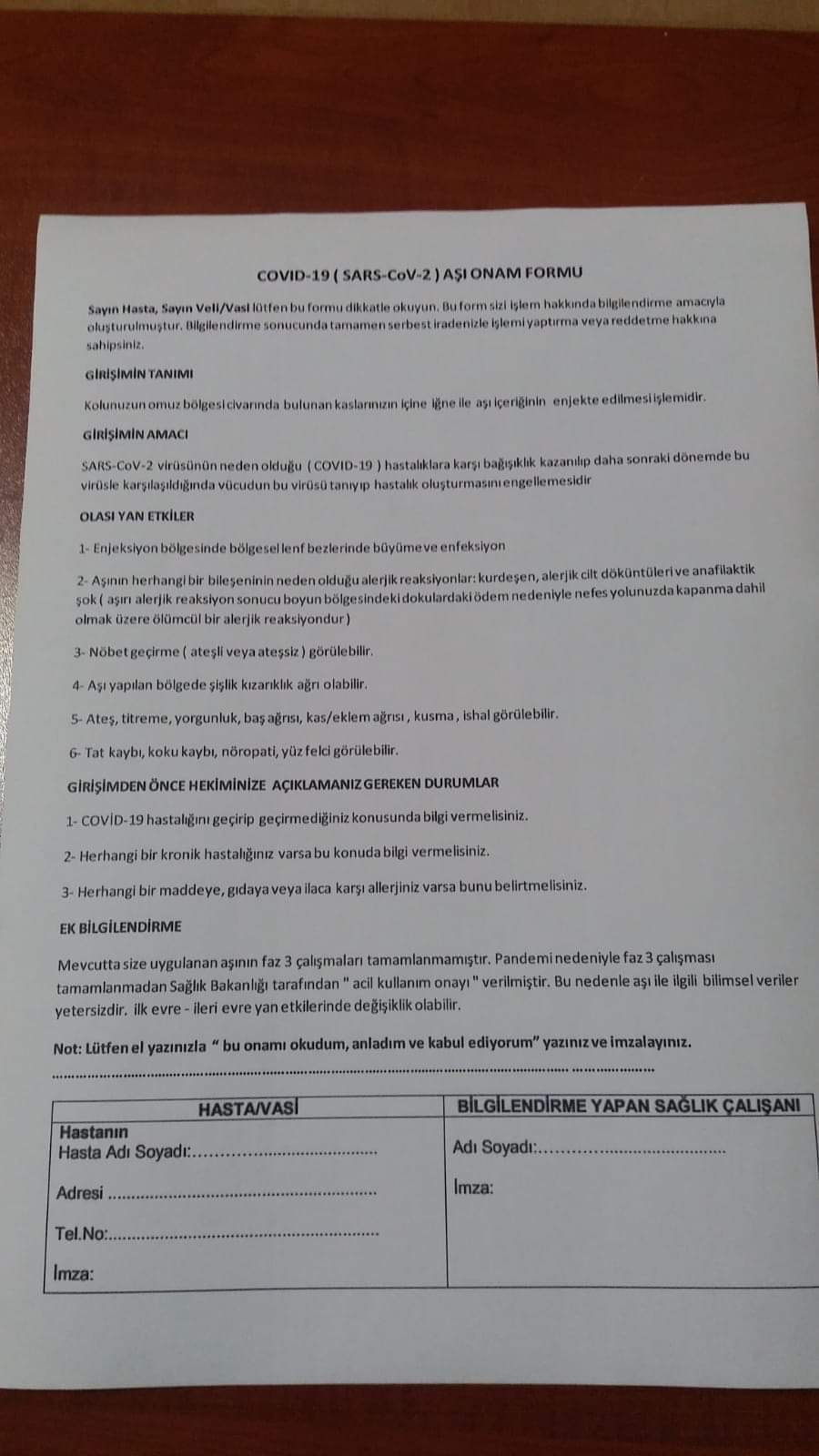 Covid-19 aşı onama formunda yer alan bilgiler halkı endişeye sevk etti.