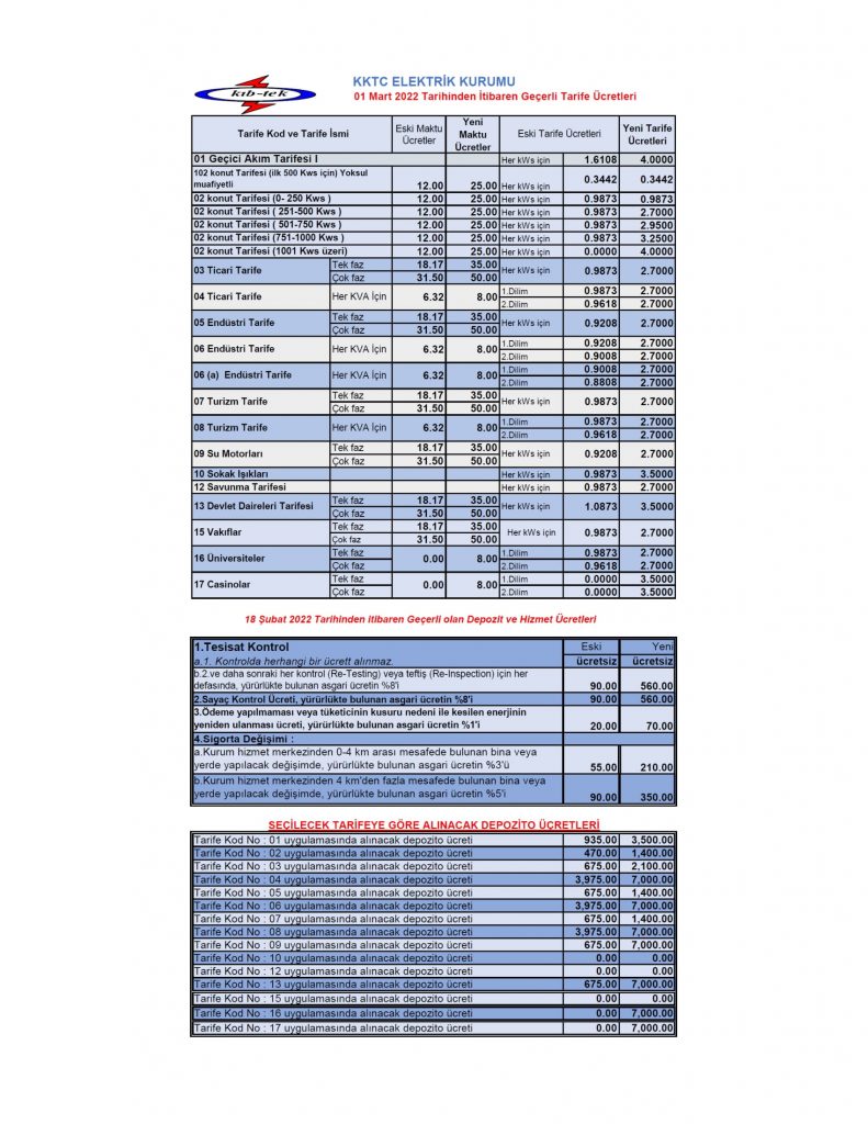 Yeni Tarife: