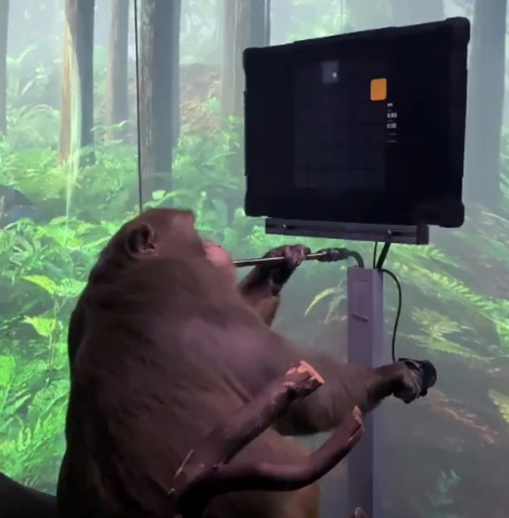 Elon Musk tarafından paylaşılan videoda, implant takılı 9 yaşındaki Pager isimli maymunun ‘Pong’ adlı video oyununu oynadığı görülüyor. İki farklı bilgisayar oyununu başarıyla oynayan maymun joystick kullanırken diğer yandan da ekranın altında yer alan bir pipetle muzlu süt içiyor.