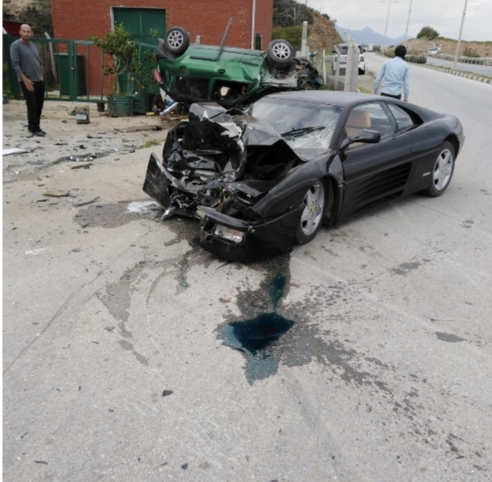 Salon araç, Ferrari marka araç ile yüzyüze çarpıştı. Araç taklalar atarak durabildi.