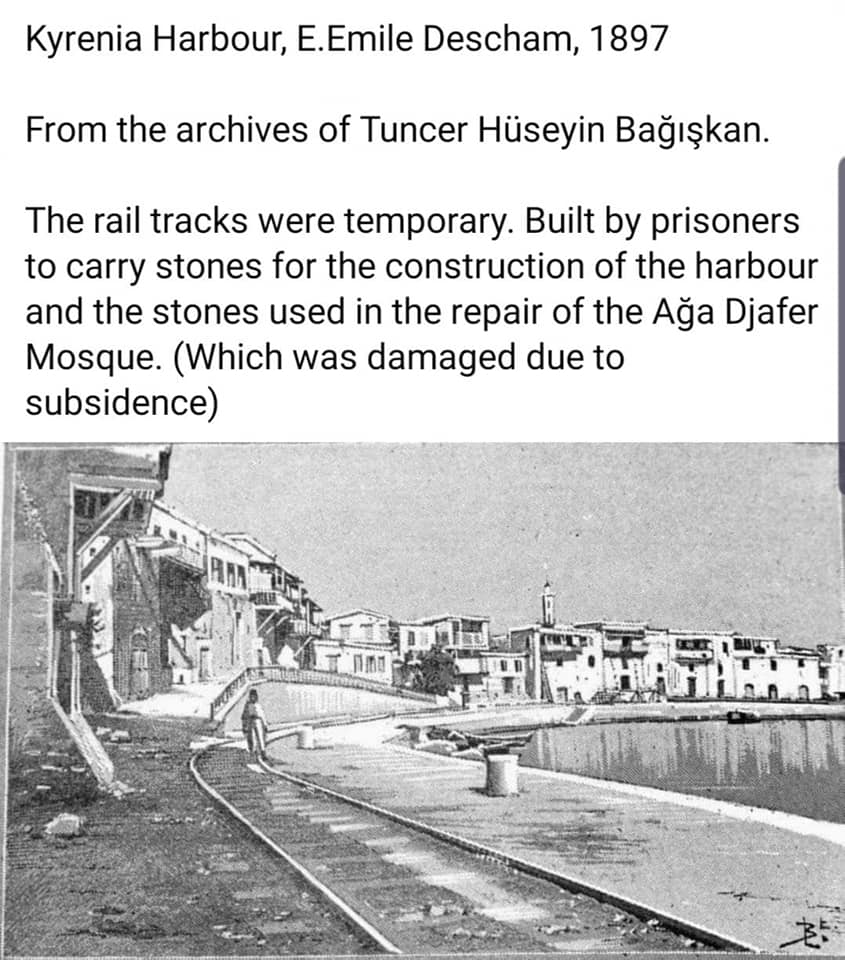 “Adına yakışır şekilde bugün Girne Antik Liman’da yapılan çalışmalar sırasında tarih fışkırdı… 1897’de kurulmuş liman içerisindeki tren rayları bulundu. Meğer hasar gören Cafer Ağa Camimizde bu raylardan taşınan taşlarla tamir edilmiş.”