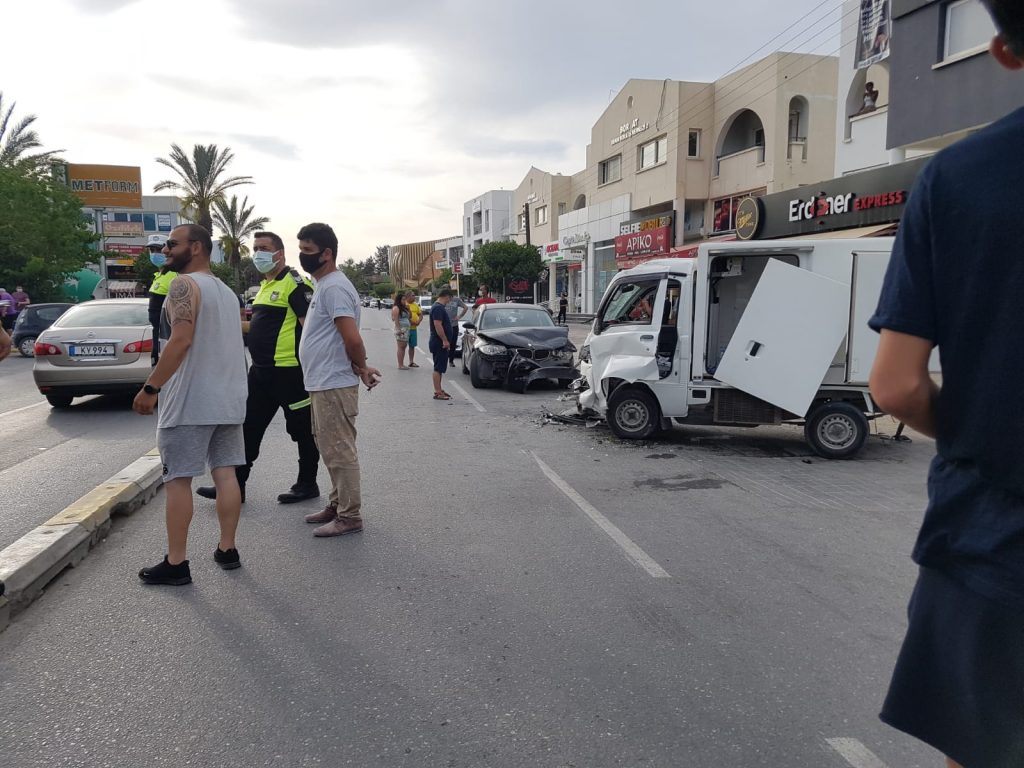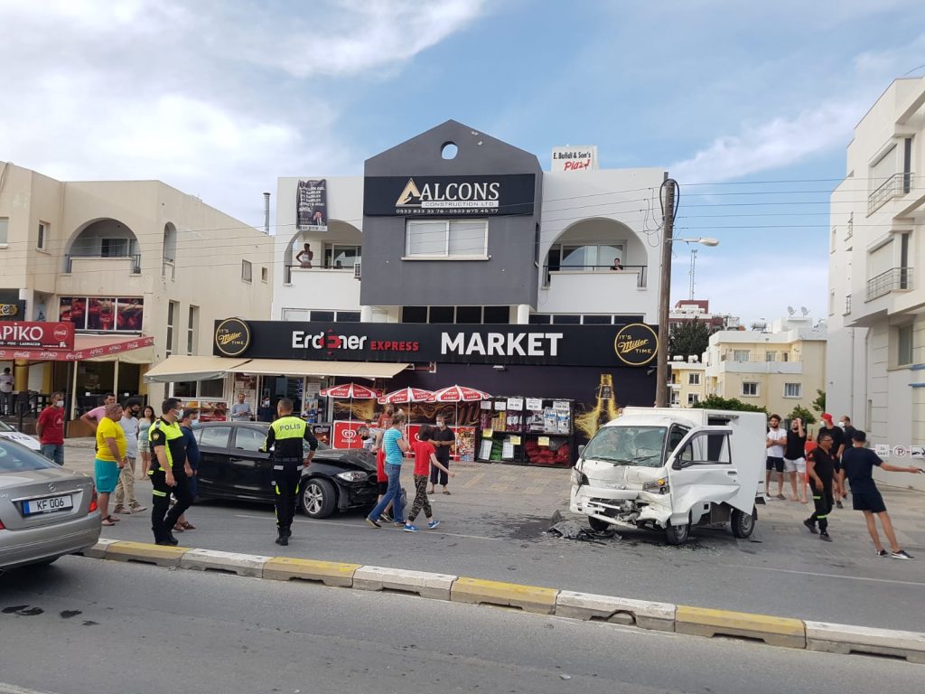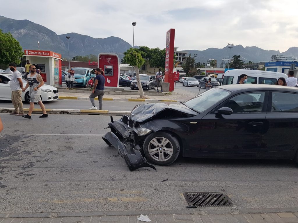 Görgü tanıklarından elde edilen bilgiye göre polisten kaçmaya çalışan araç kaza yaptı ! Girne Karakum Lemar karşısında az önce meydana gelen kazada iki araç kafa kafaya çarpıştı..