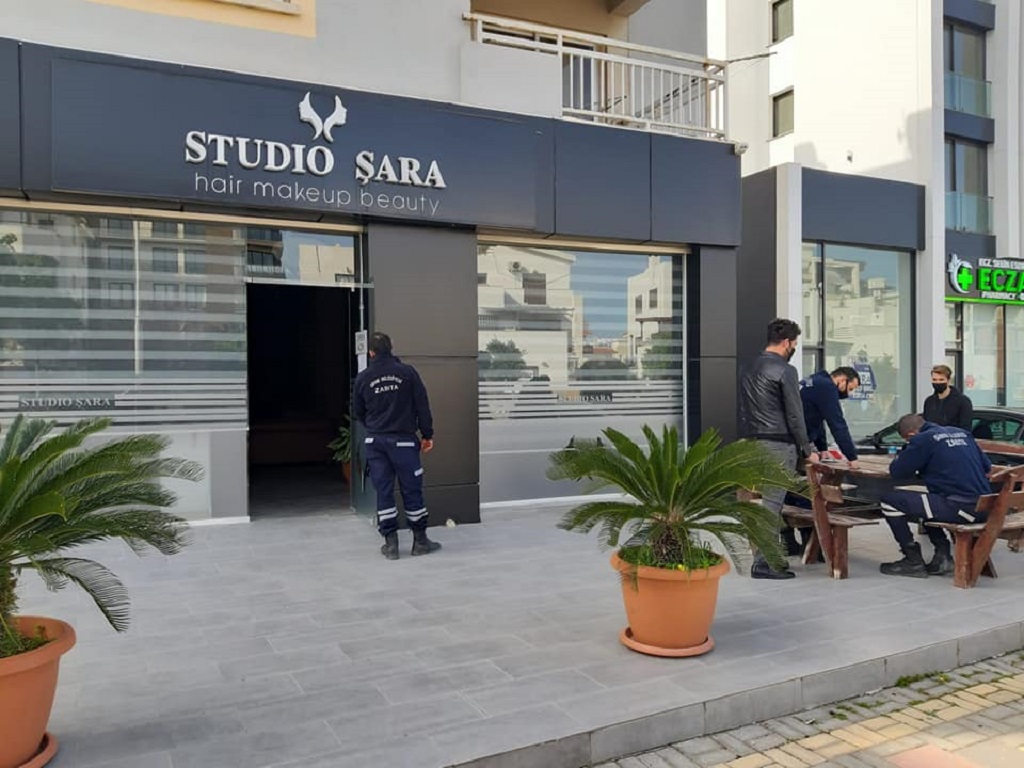 Girne Belediyesi zabıta birimleri tarafından, Studio Şara isimli kuaför dükkanının Covid-19 ile mücadele önlemleri ihlal edilerek açık tutulduğu ihbarı üzerine