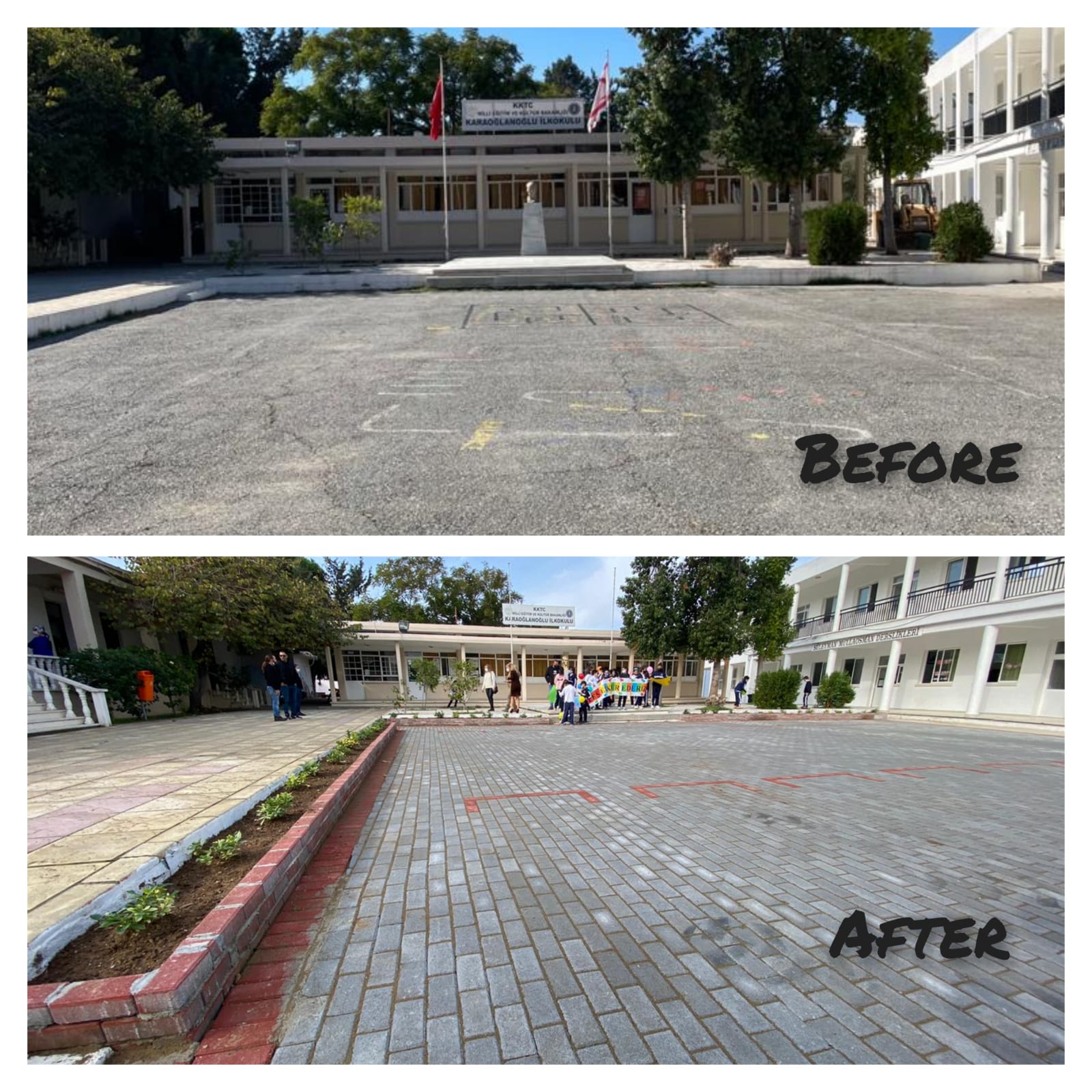 İş insanları Fisun Ülkü ve Sönmez Aydoğan liderliğinde başlatılan; Karaoğlanoğlu İlkokulu ön ve arka bahçesinin düzenlenmesi ile ilgili proje tamamlandı.