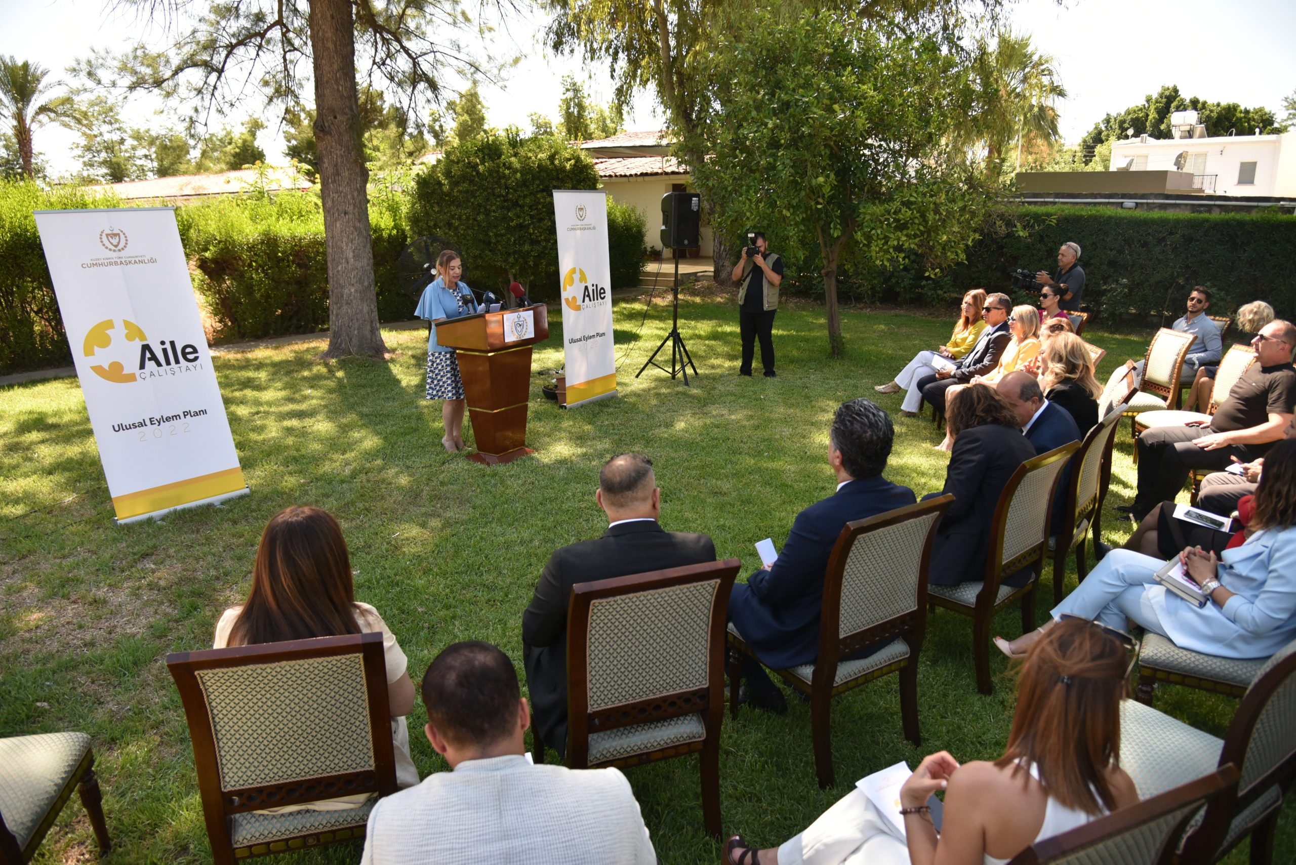 Aile Çalıştayı sonuç raporu ve Ulusal Eylem planının basına sunulduğu Cumhurbaşkanlığı bahçesinde Cumhurbaşkanı Ersin Tatar’ın eşi Sibel Tatar, Cumhurbaşkanı Ersin Tatar birer konuşma yaptı çalıştayın akademik moderatörü Sibel Dinçyürek de eylem Şubat ayında gerçekleşen çalıştay ve sonrasında oluşturulan rapor ve eylem planı hakkında bilgi verdi.