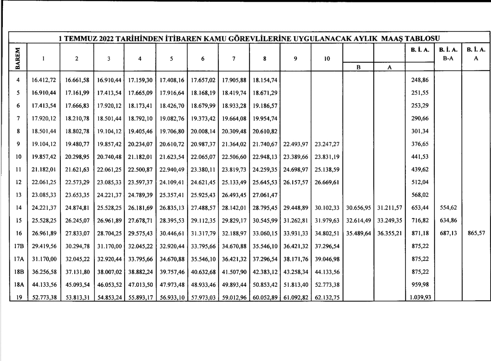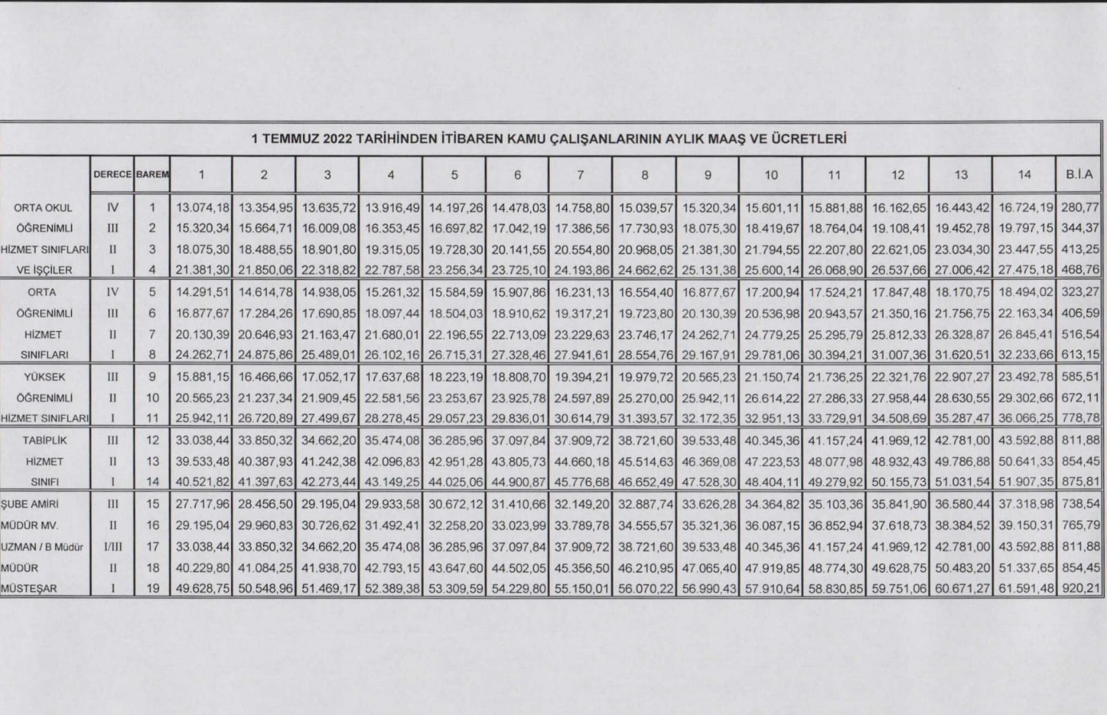 Açıklanan maaş tablosuna göre ortaokul mezunu en düşük maaşlı kamu işçisi Temmuz sonunda 13 bin 74 TL maaş alacak.
