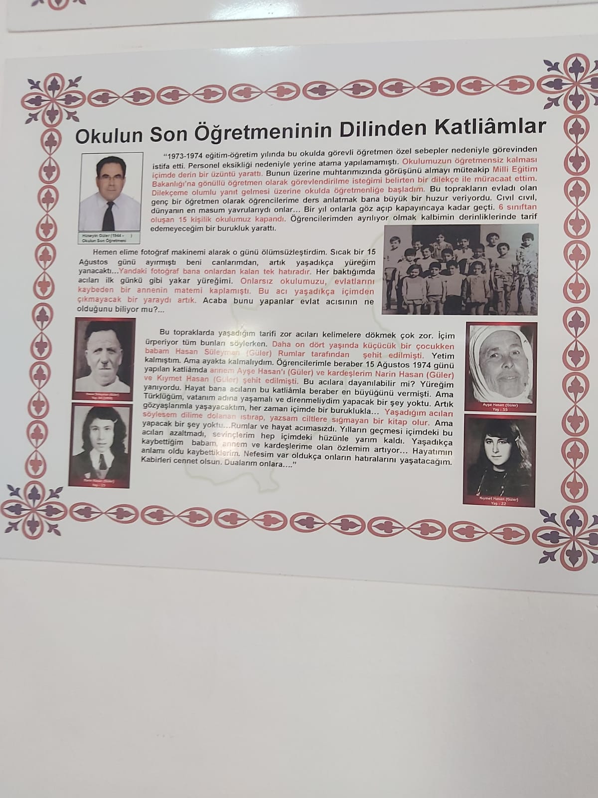 Okulun son öğretmeni olan Hüseyin Güler de “Bu okulda okuyan öğrencilerin hiçbiri artık yok. Umarız bir daha böyle acılar yaşanmaz.” dedi.