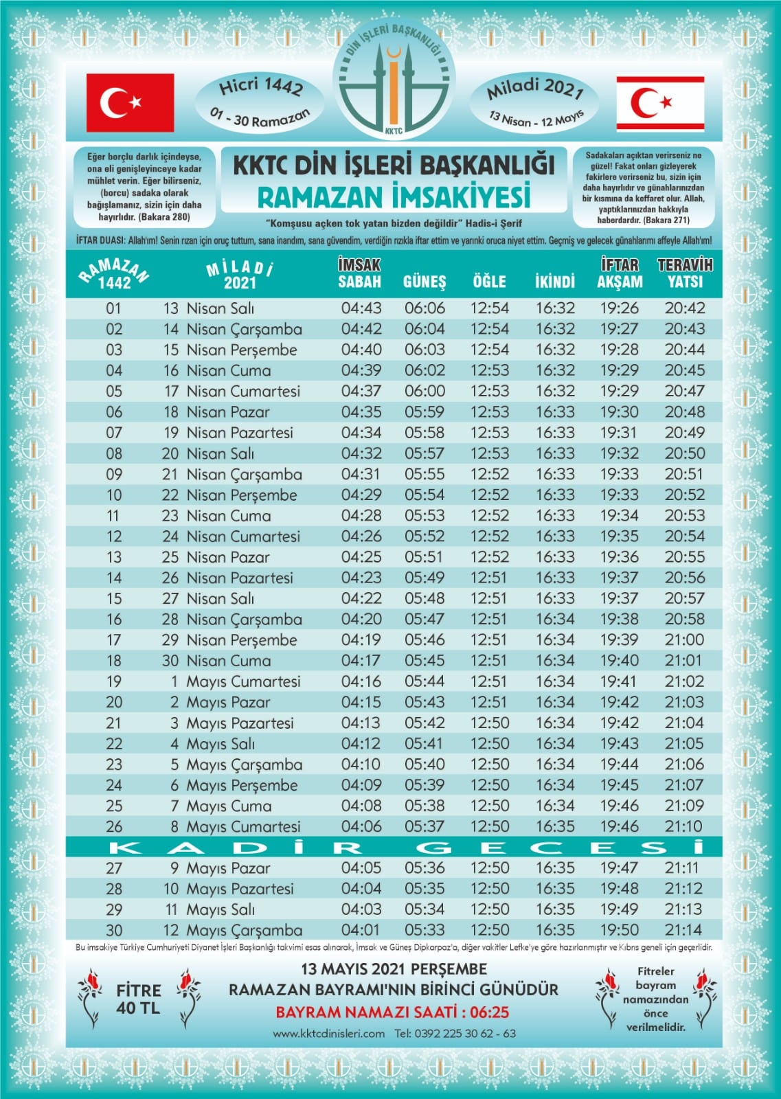 KKTC için 2021 Ramazan İmsakiyesi: Sahur ve iftar hangi gün saat kaçta?