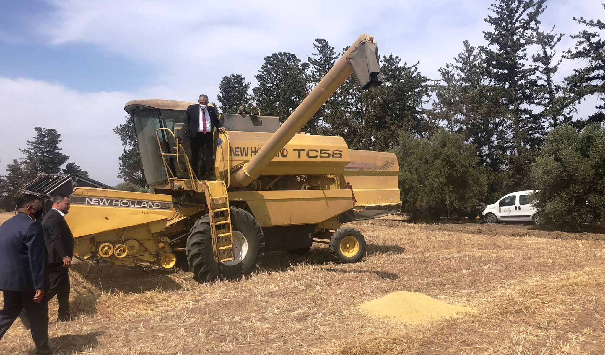 Tarım ve Doğal Kaynaklar Bakanı Nazım Çavuşoğlu, biçerdövere binerek ilk hasatı kendisi gerçekleştirdi.