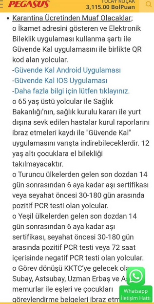 Üçüncü resim ise Pegasus’un halen daha sayfasında bulunan bildiri. Bu kabul edilemez bir durum çünkü Pegasus’a göre annemin 6 ay dolmadan bir doz daha aşı yapması demek oluyor bu..”