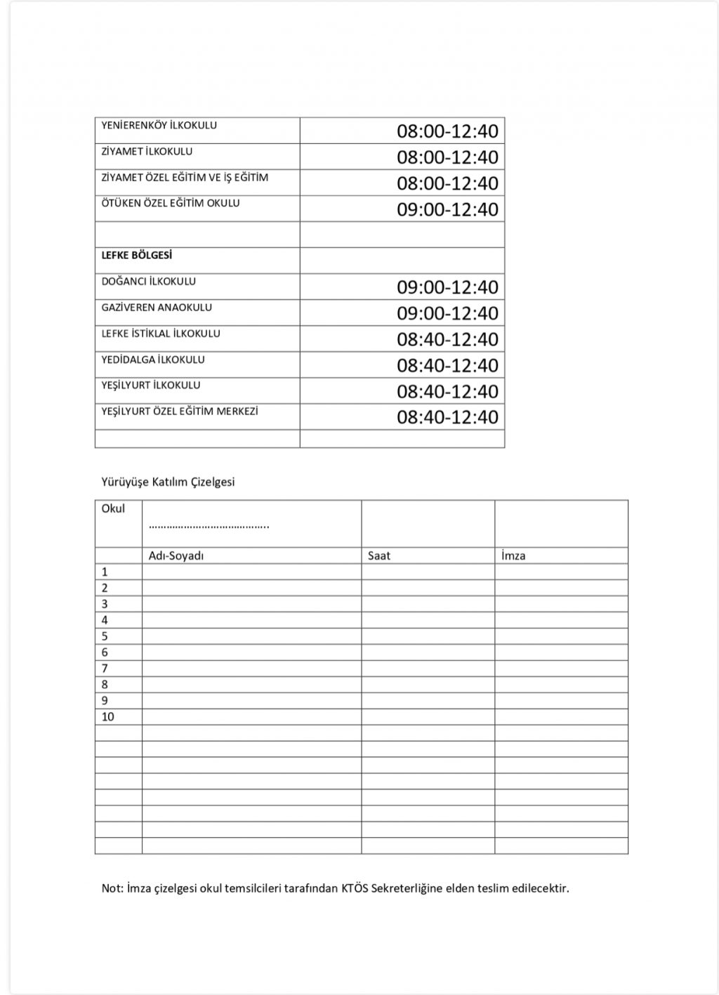 Kıbrıs Türk Öğretmenler Sendikası (KTÖS), Salı günü Sendikal Platformun düzenleyeceği eylem, yürüyüş ve mitinge okullarda greve giderek katılım sağlayacaklarını kaydederek, okullarda uygulanacak grev saatlerini açıkladı.