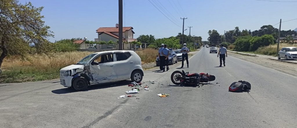 Kaza sonucu ağır yaralanan motosiklet sürücüsü kaldırıldığı Lefkoşa Dr. Burhan Nalbantoğlu Devlet Hastanesinde tedavisi halen sürüyor.