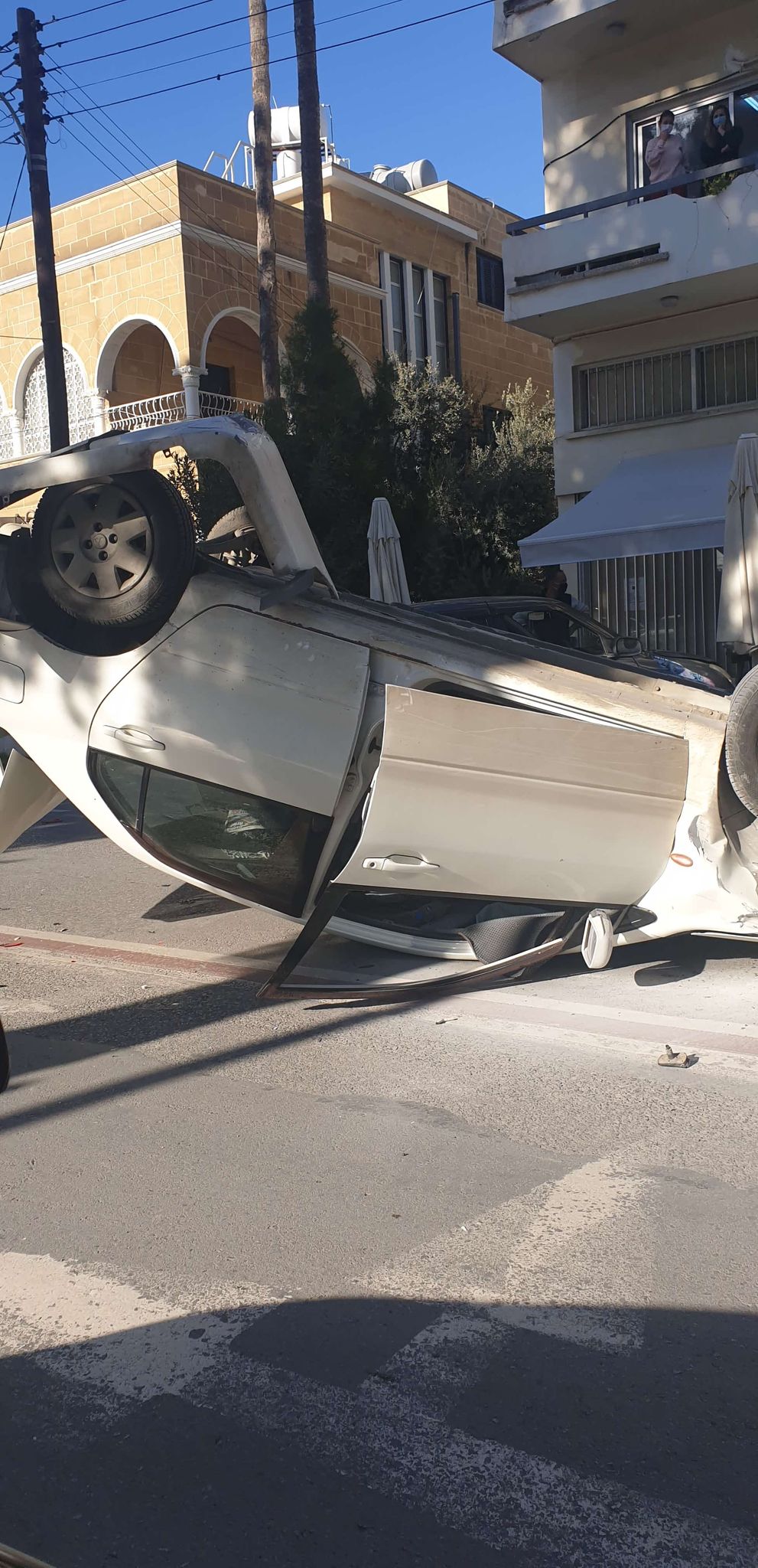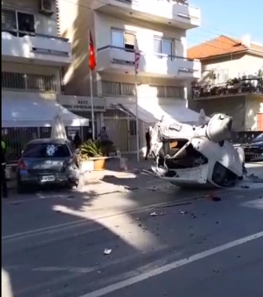 Lefkoşa’da bugün saat 15:30 sıralarında meydana gelen trafik kazasında bir araç devrildi.