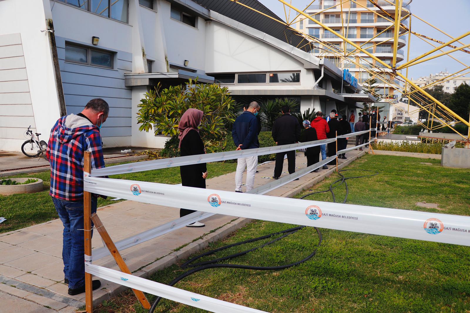 Gazimağusa Belediyesi ve Sağlık Bakanlığı iş birliğinde Mağusa Gelişim Akademisi’ne bağlı Mağusa Arena Spor Salonu’nda bugün 200 kişiye ücretsiz PCR testi yapıldı.