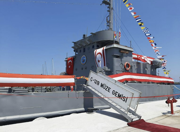 1974 Kıbrıs Barış Harekâtı’nda yer alan çıkarma gemi modelinin sonuncusu olan Ç-128 çıkarma gemisi, bugün düzenlenen törenle Girne Yeni Turizm Limanı’nda müze gemi olarak ziyarete açıldı.
