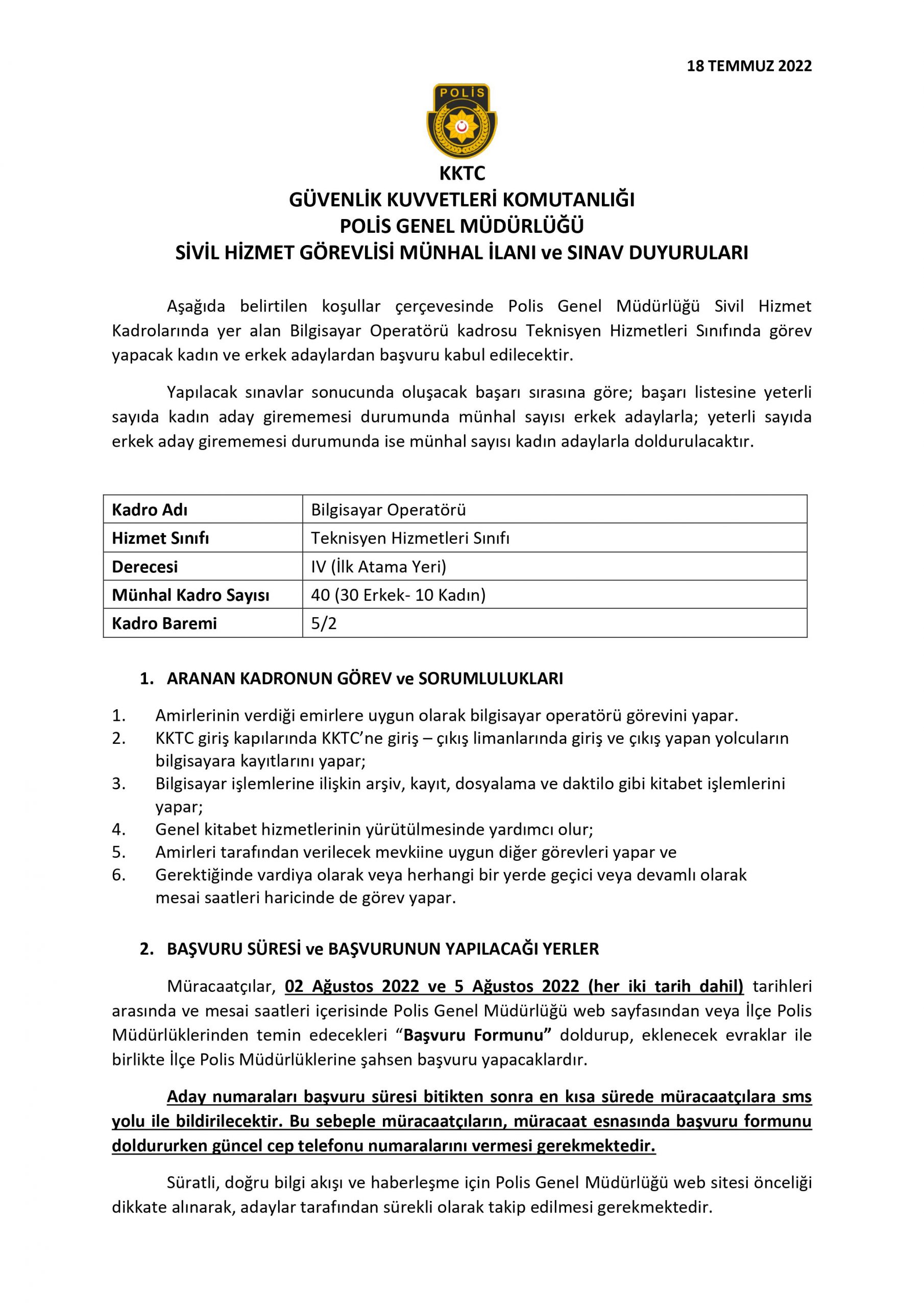 Polis’ten Sivil Hizmet Görevlisi münhal duyurusu