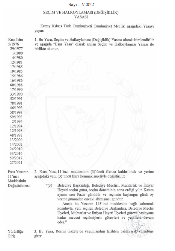 3. Seçim tarihi Resmi Gazete’de: 27 Kasım 2022 Pazar günü