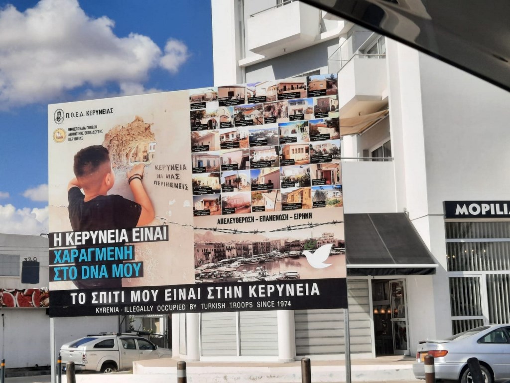 3. Sınır kapısında provokatif tabela: “Girne- 1974’ten beri Türk askerleri tarafından yasadışı şekilde işgal ediliyor”