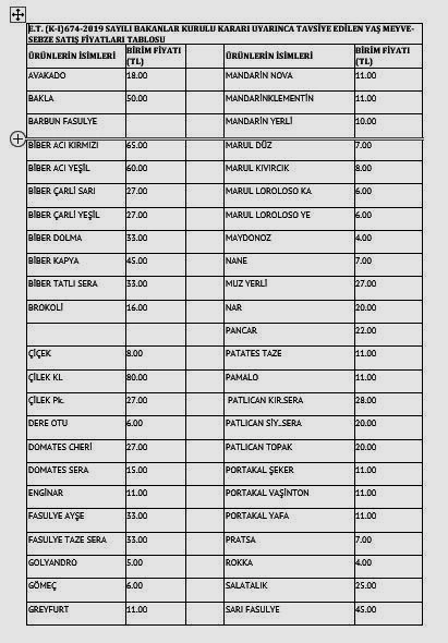 Bakan Amcaoğlu, toptan meyve ve sebze satış fiyatlarının ekteki gibi olduğunu söyledi: