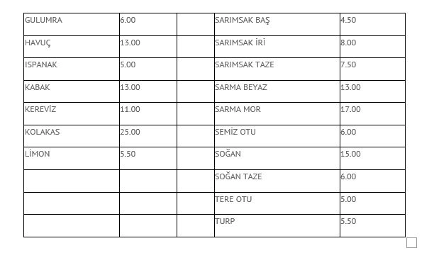 3. Toptan taze meyve ve sebze fiyatları haftada 3 kez duyurulacak